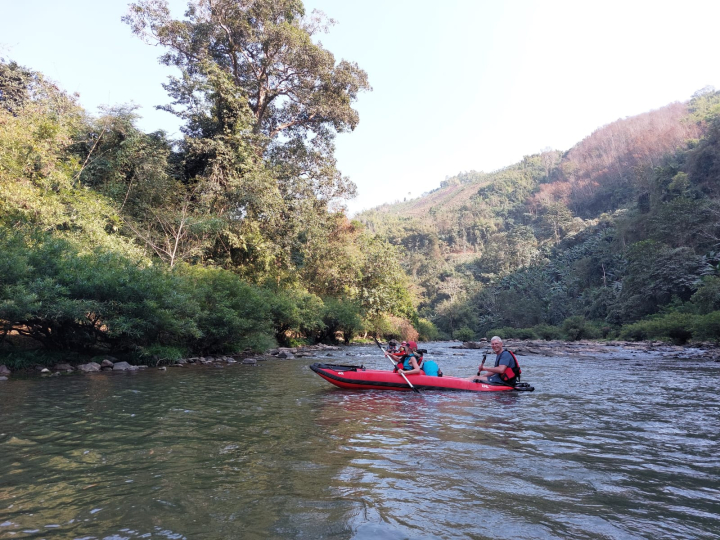 The highlight of the program is adventure kayaking on the Nam Tha River (Nam Ha River only in the rainy season) and visiting the ethnic village on the riverbank. There are many rapid along the river which bring you to twist your body with water waves.